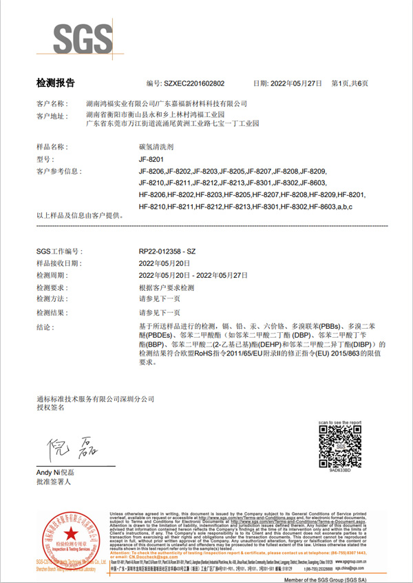 碳氢清洗剂 欧盟ROSH认证